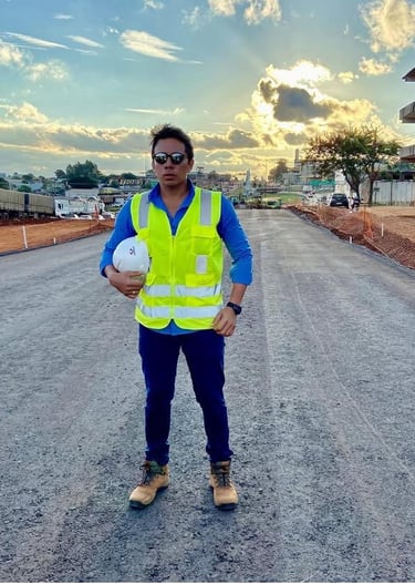 Sou Ygor Tomé, Engenheiro Civil que vive a rotina de campo todos os dias.